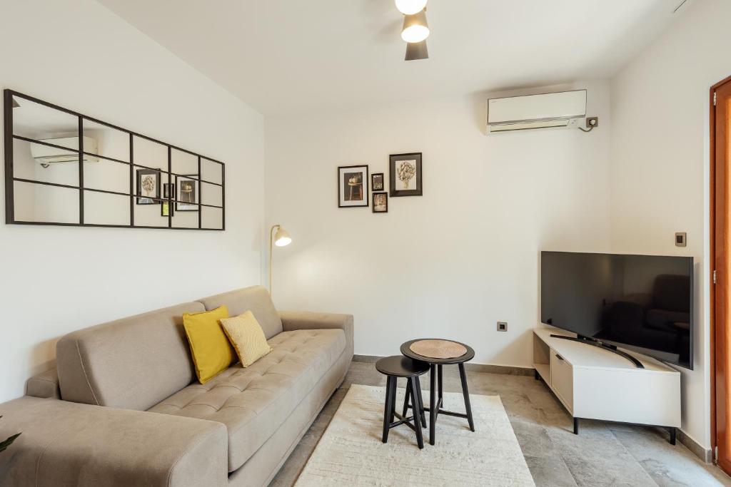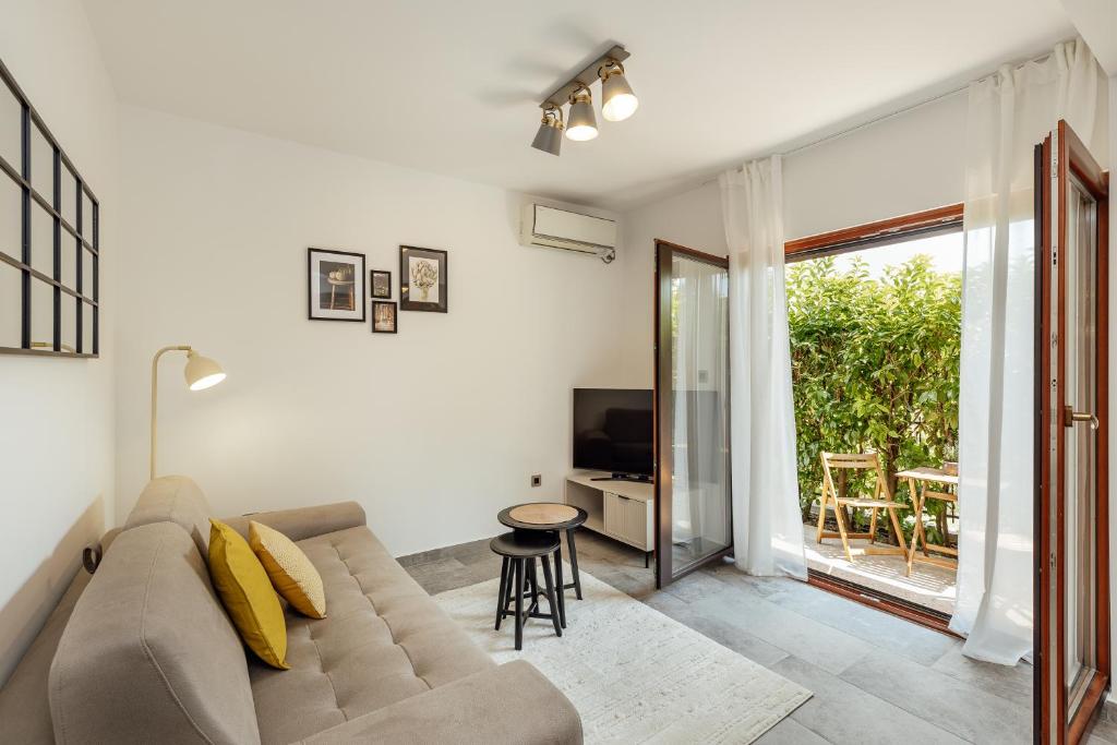 The private pool is the special feature of this apartment. Featuring a private entrance, this air-conditioned apartment consists of 1 living room, 1 separate bedroom and 1 bathroom with a bath or a shower and a hairdryer. Meals can be prepared in the well-fitted kitchen, which comes with a refrigerator, kitchenware, an oven and a tea and coffee maker. Boasting a terrace with garden views, this apartment also provides a washing machine and a flat-screen TV with satellite channels. The unit offers 2 beds.