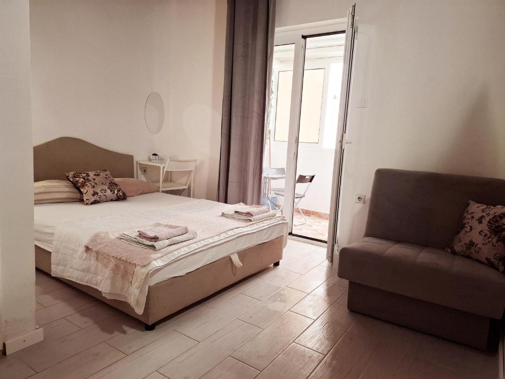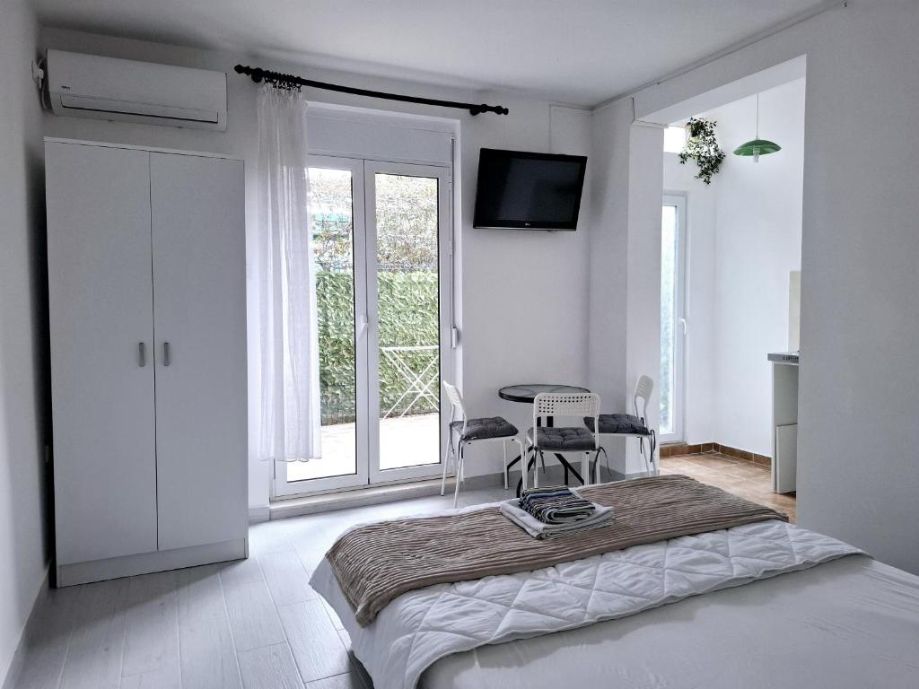 Guests can make meals in the kitchenette that features a stovetop, a refrigerator, kitchenware and an electric kettle. The studio features air conditioning, a seating area, a terrace with garden views as well as a private bathroom boasting a bath. The unit has 2 beds.