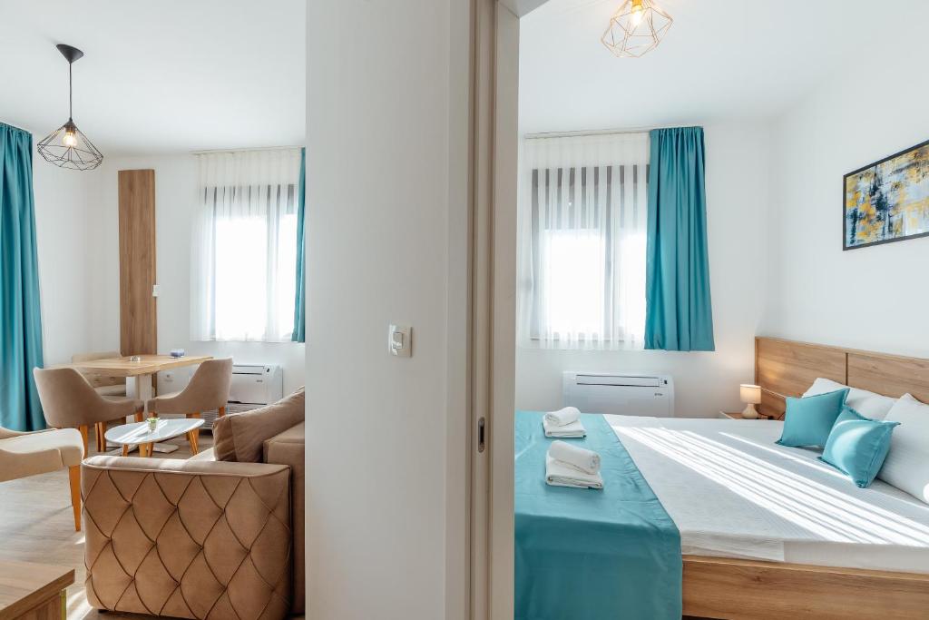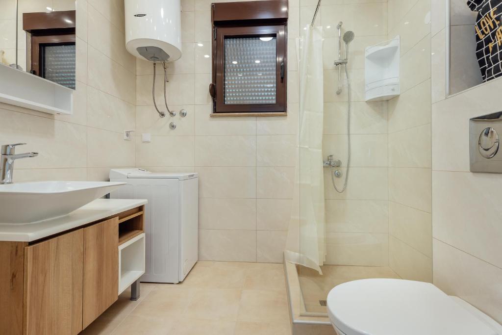 Featuring a private entrance, this air-conditioned apartment consists of 1 living room, 1 separate bedroom and 1 bathroom with a shower and a hairdryer. Meals can be prepared in the well-fitted kitchen, which is equipped with a stovetop, a refrigerator, kitchenware and a microwave. Boasting a balcony with sea views, this apartment also provides a washing machine and a flat-screen TV with cable channels. The unit offers 2 beds.