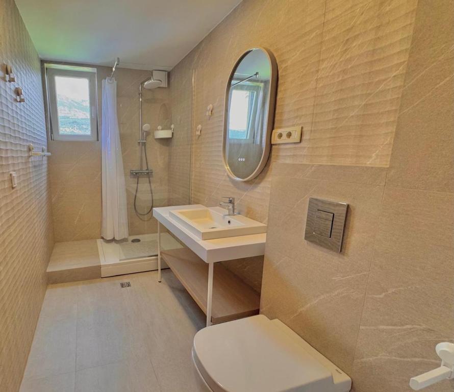 Featuring a private entrance, this spacious apartment also consists of 2 bedrooms, a seating area and 1 bathroom with a bath or a shower and a hairdryer. Guests can make meals in the kitchen that is equipped with a stovetop, a refrigerator, a dishwasher and kitchenware. The air-conditioned apartment provides a flat-screen TV, a washing machine, soundproof walls, a dining area as well as sea views. The unit offers 2 beds.