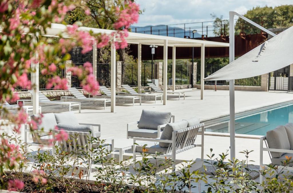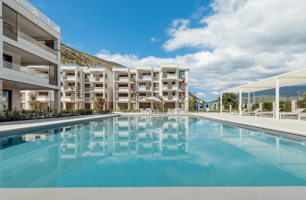 This apartment's standout feature is the pool with a view. In the kitchen, guests will find a stovetop, a refrigerator, a dishwasher and an oven. The apartment offers air conditioning, a private entrance, a tea and coffee maker as well as a terrace with sea views. The unit has 1 bed.