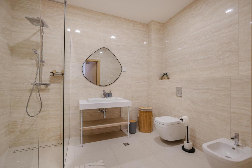 This apartment features a private pool. The well-equipped kitchen features a refrigerator, a dishwasher, an oven and a microwave. The air-conditioned apartment provides a flat-screen TV, a washing machine, a seating area, a dining area as well as sea views. The unit offers 1 bed.