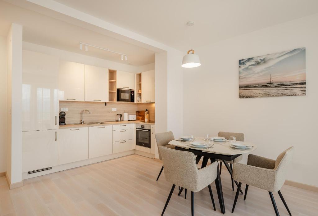 Refrigerator, Microwave, Dishwasher, Washing machine, Kitchen, Electric kettle, Oven, Stovetop, Toaster, Coffee machine, Dining table, Wine glasses