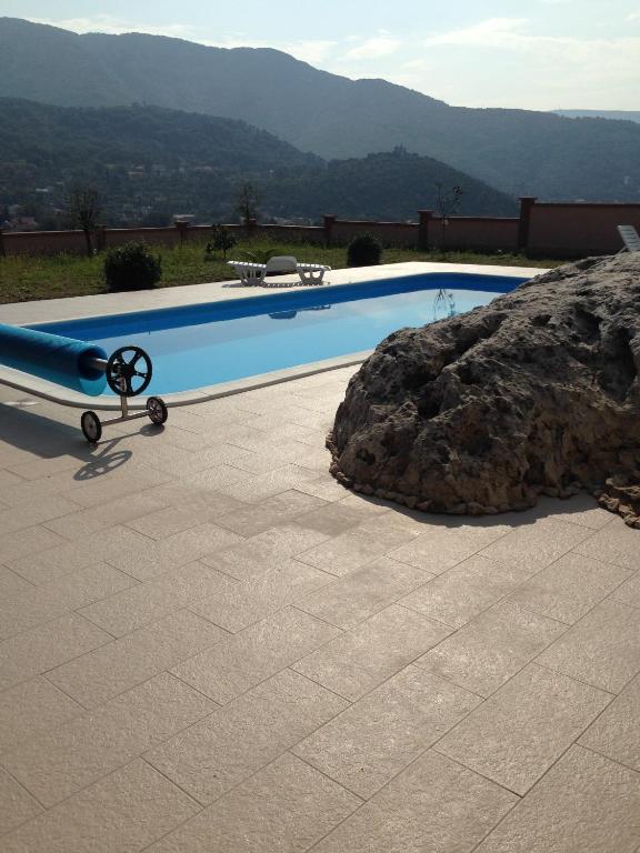 Guests will have a special experience as this holiday home features a pool with a view and a sauna. Featuring a private entrance, this air-conditioned holiday home is consisted of of 1 living room, 2 separate bedrooms and 1 bathroom with a shower and a hairdryer. Guests will find a stovetop, a refrigerator, kitchenware and a toaster in the kitchen. The holiday home also has a barbecue. The holiday home offers a washing machine, soundproof walls, a coffee machine, a flat-screen TV with cable channels, as well as garden views. The unit offers 2 beds.